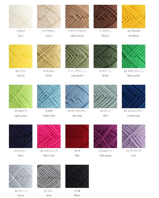 *We do not keep this product in our stock therefore orders may take an additional 1-2 weeks for delivery*FibersAcrylic 100%Weight 25gLength 48mStraight-pointed needle Japan size 8-10US 7 - 8 or 4.5 - 5mmCrochet hook Japan size 7/0-8/0