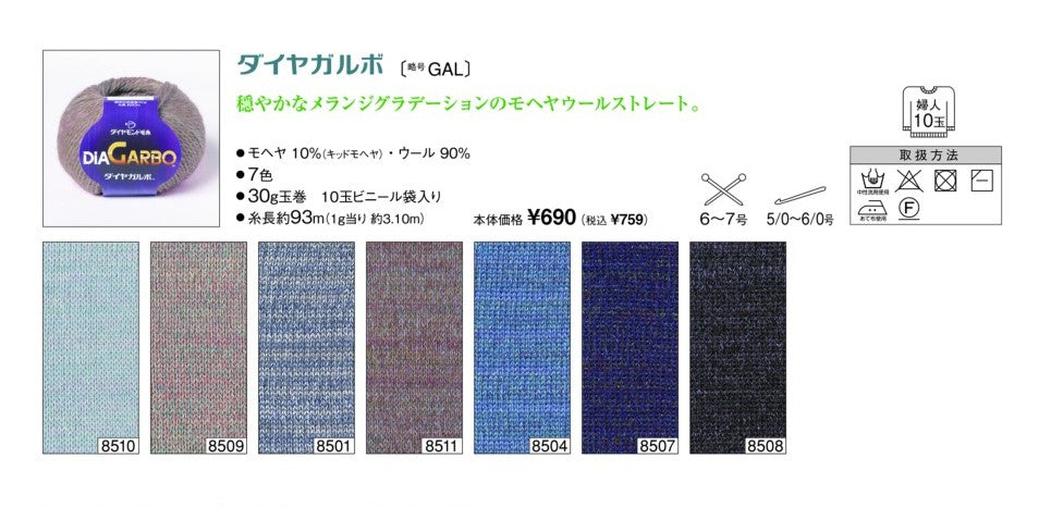 *We do not keep this product in our stock. Please allow an addition 5-7 days for delivery.*FibersKid mohair 10%Wool 90%Weight 30gLength 93mStraight-pointed needle Japan size 6-7Crochet hook Japan size 5/0-6/0\