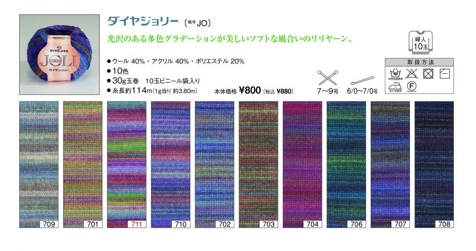 *We do not keep this product in our stock. Please allow an addition 5-7 days for delivery.*FibersWool 40%Acrylic 40%Polyester 20%Weight 30gLength 114mStraight-pointed needle Japan size 7-9Crochet hook Japan size 6/0-7/0