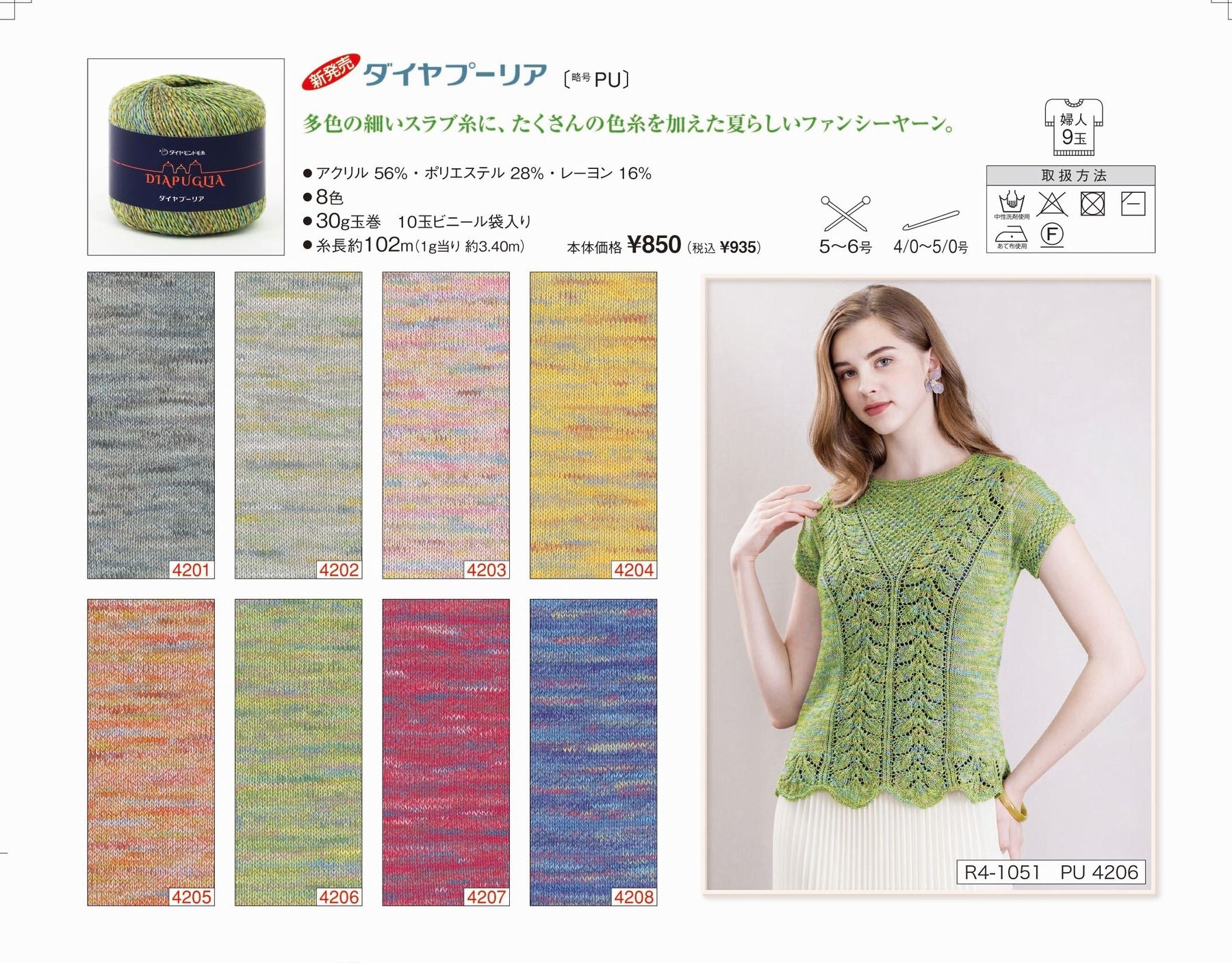 *We do not keep this product in our stock. Please allow an addition 5-7 days for delivery.*FibersAcrylic 56%Poliester 28%Rayon 16%Weight 30gLength 102mStraight-pointed needle Japan size 5-6Crochet hook Japan size 4/0-5/0