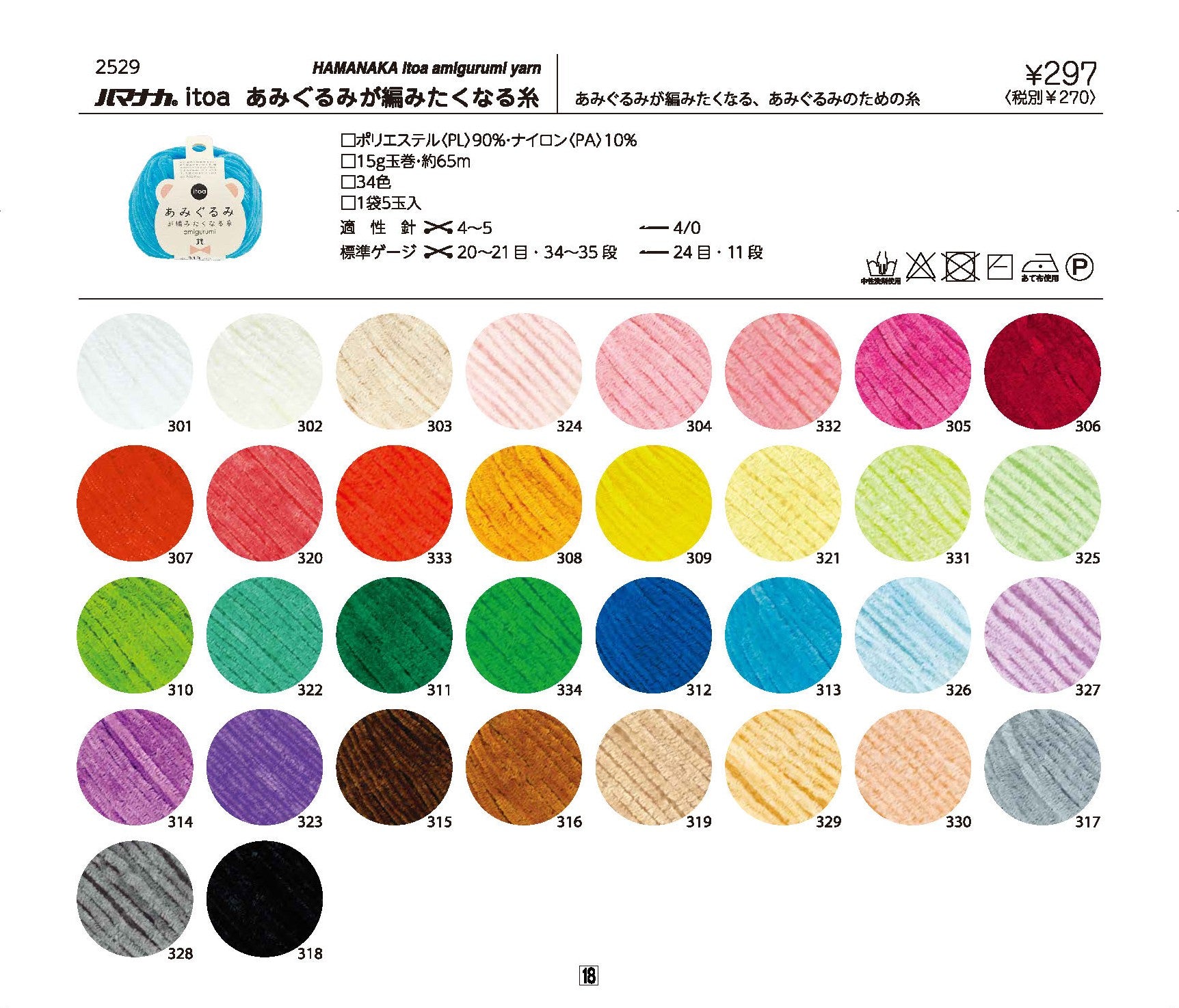 *We do not keep this product in our stock. Please allow an addition 5-7 days for delivery.* Fibers Nylon 90% Polyester 10% Weight 15g Length 65m Straight-pointed needle Japan size 4-5 Crochet hook Japan size 4/0 Guage ST 20-21stitches & 34-35rows Guage DC 24stitches and 11rows
